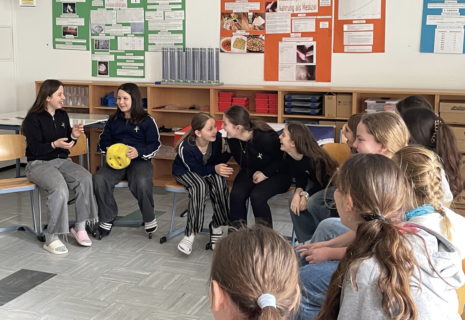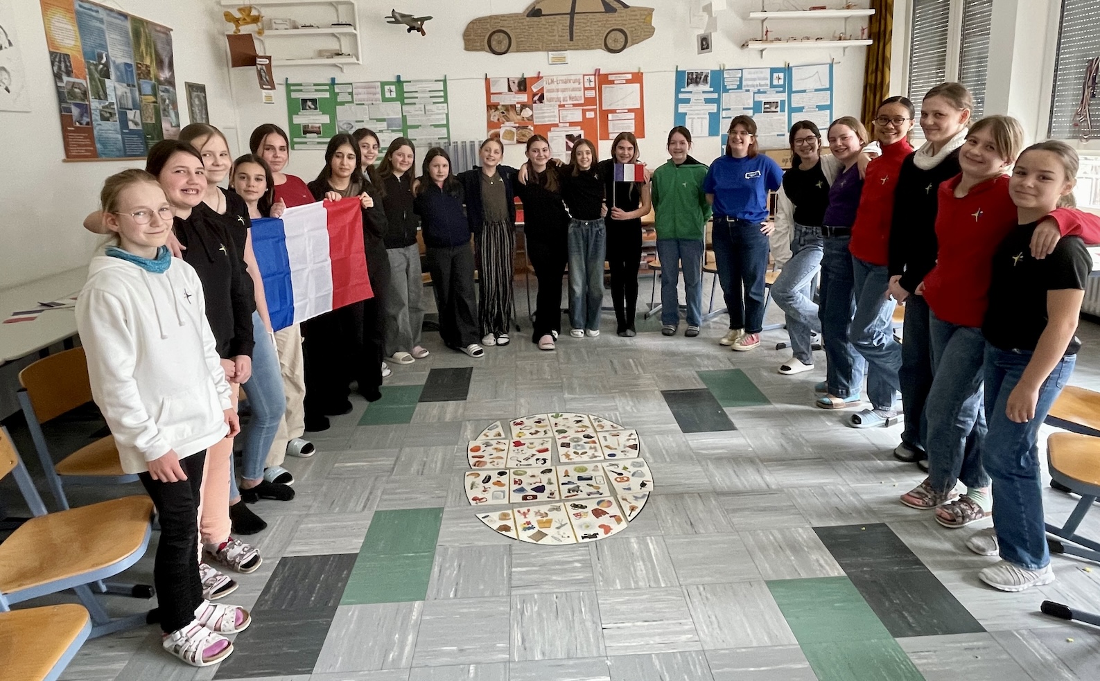 Und um die Begeisterung für Französisch noch lange wach zu halten und vor allem in den kommenden Jahren bei den Schülerinnen zu erhalten, werden zukünftig auch im Unterricht aus der Schatztruhe „Musik und Spiele“ immer wieder amüsante und gleichzeitig lehrreiche Elemente in den Unterricht einfließen. Danke, Laurine, dass du da warst und uns gezeigt hast, wie schön und amüsant Französischlernen sein kann!