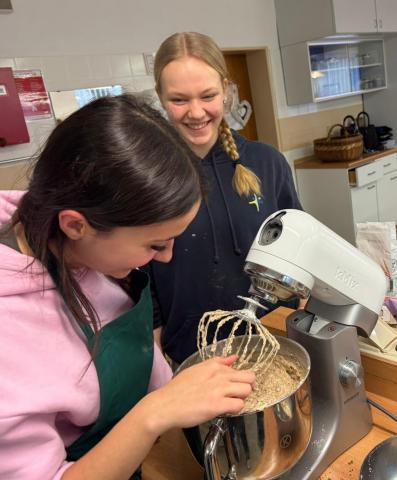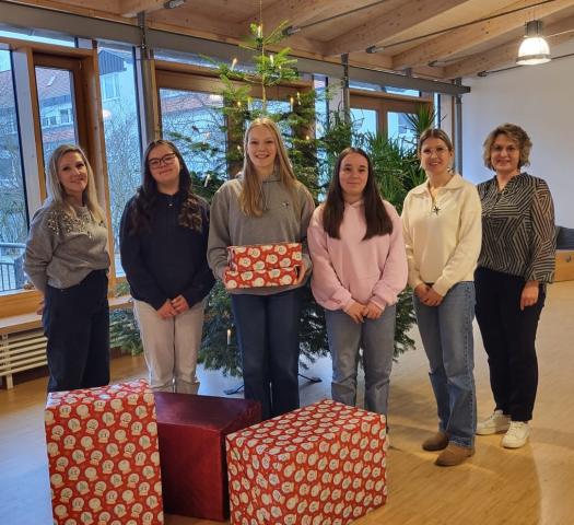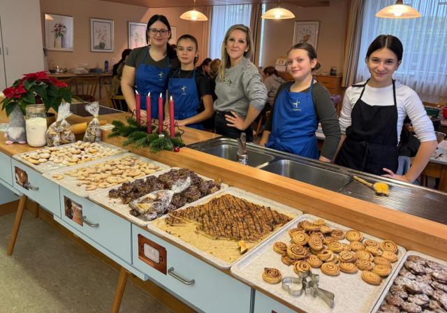 Kurz darauf zeigte sich der Einsatz beim Kuchenverkauf am Elternsprechtag. Mit selbstgebackenen Leckereien sorgten die Mädchen für gute Stimmung und gefüllte Spendendosen. Auch in der Vorweihnachtszeit ging es fleißig weiter: Zusammen mit Frau Mayer, Lehrerin für Ernährung und Gesundheit, wurden Plätzchen gebacken und verkauft – eine Aktion, die bei der gesamten Schulfamilie großen Anklang fand.