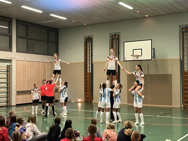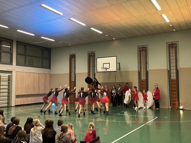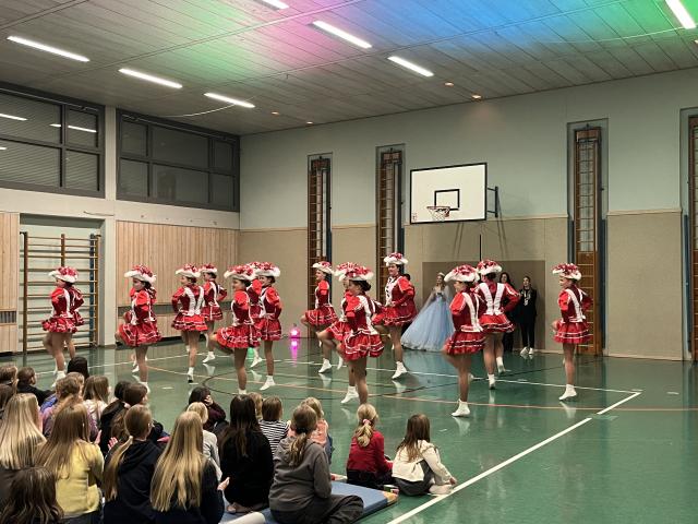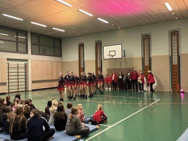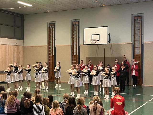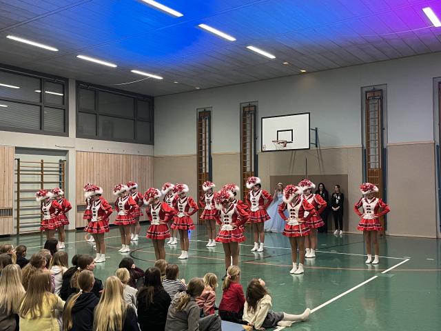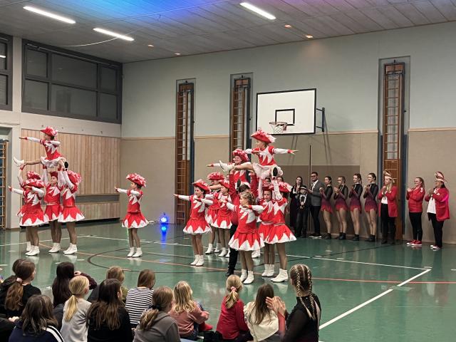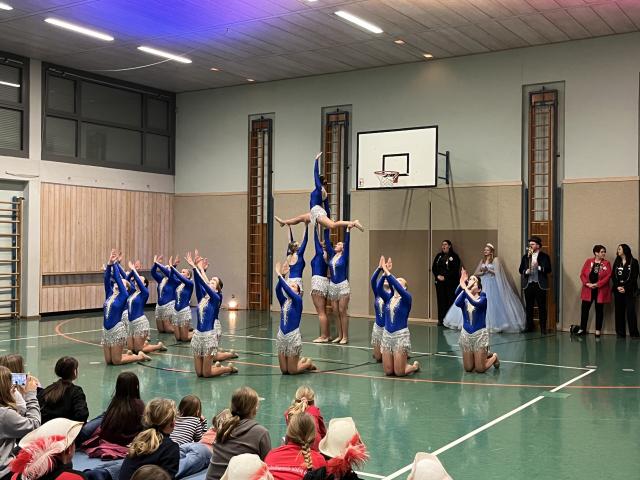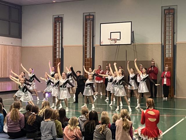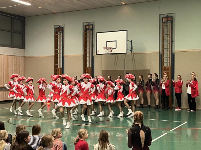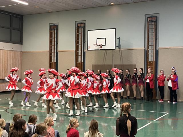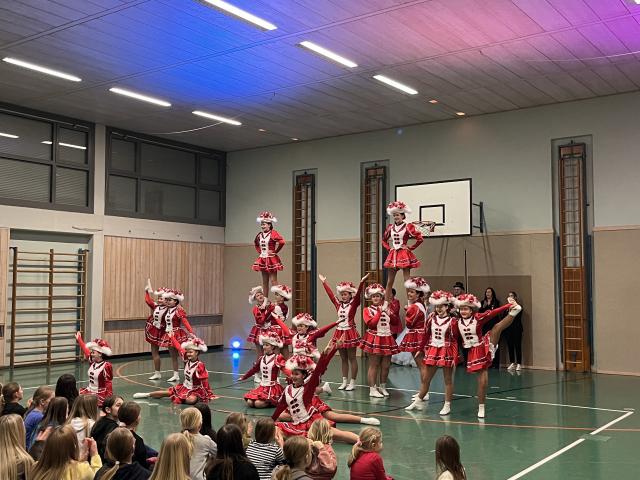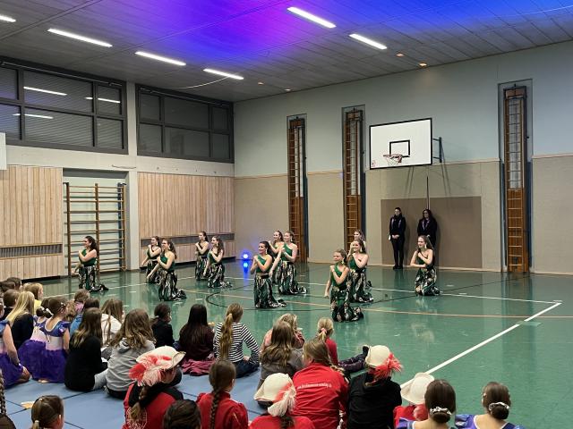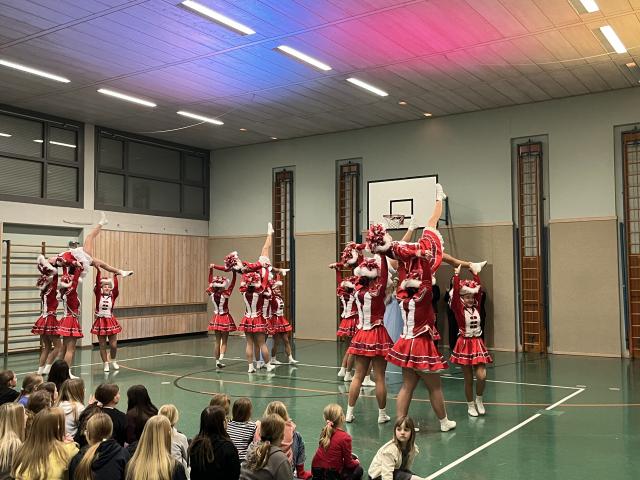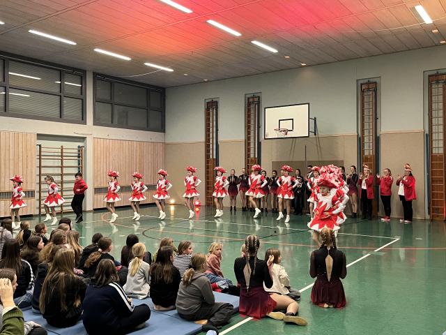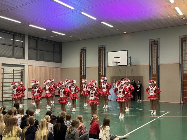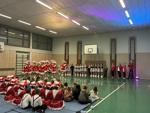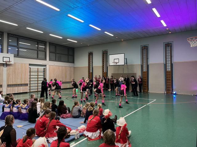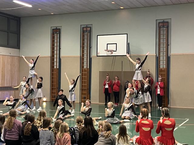 Der Höhepunkt des Abends fand zweifellos in der Turnhalle statt. Sie entwickelte sich rasch zum Mittelpunkt des Geschehens und zum echten Zuschauermagneten. Insgesamt sieben Garden waren der Einladung der Columba-Neef-Realschule gefolgt und präsentierten ein abwechslungsreiches Programm aus tänzerischem Können, farbenfrohen Kostümen und beeindruckender Choreografie. Besonders stolz war die Schule darauf, dass auch zahlreiche eigene Schülerinnen Teil der Garden waren und ihr Können vor großem Publikum zeigen konnten.