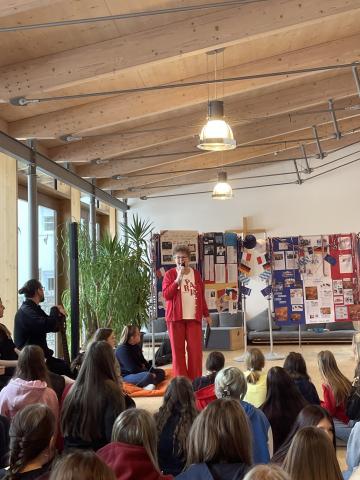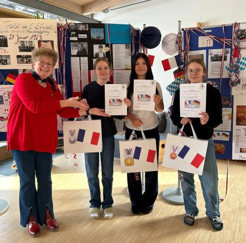 In der ganzen Pausenhalle flatterten unzählige Fähnchen und Luftschlangen in den Farben Frankreichs, Deutschlands, Bayerns und der EU – schon optisch gelang es, die Neugierde des Publikums zu wecken. Den bedeutungsvollen Schluss - Accord setzte ein Quiz rund um die deutsch-französische Freundschaft, an dem alle Schülerinnen teilnehmen konnten.