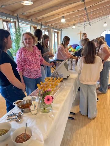 Auch naturwissenschaftlich Interessierte kamen auf ihre Kosten: Bei anschaulichen MINT-Experimenten wurde der Forschergeist geweckt und mit großer Neugier ausprobiert. Ein weiterer Programmpunkt führte in die digitale Welt, wo die Schülerinnen spannende Möglichkeiten im Umgang mit iPad und Smartphone kennenlernen konnten. Kreativ ging es in der Pausenhalle zu. Das Fach Ernährung und Gesundheit sowie die SMV haben Cake Pops hergestellt, die verziert und verkostet wurden. Für eine kleine Erfrischung sorgten leckere Eis-Shakes.