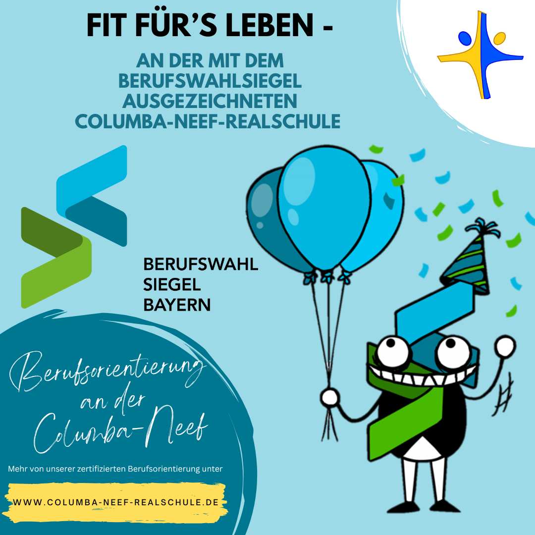 Für unser erfolgreiches Gesamtkonzept zur Berufsorientierung wurde die Columba-Neef-Realschule erstmals im Schuljahr 2012/13 mit dem Berufswahlsiegel des Landkreises Passau bzw. dem Berufswahlsiegels Bayern ausgezeichnet.